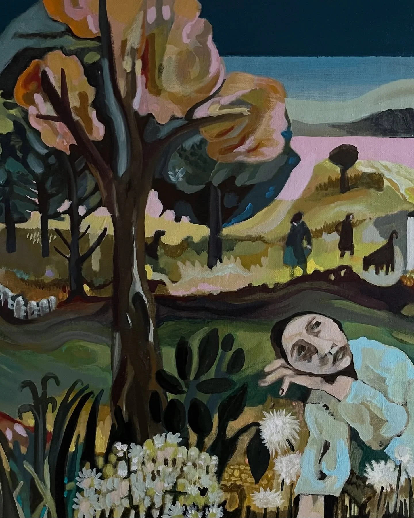 So with fresh morning eyes I wish to re examine the possibilities of painting my personal narrative, one which pulls from observation of the βrealβ and melds with the imagined. Excavating from my own bank of memories and foraging from both the contemporary and historical larder cupboard to construct a narrative which both explores and extends my working practice.